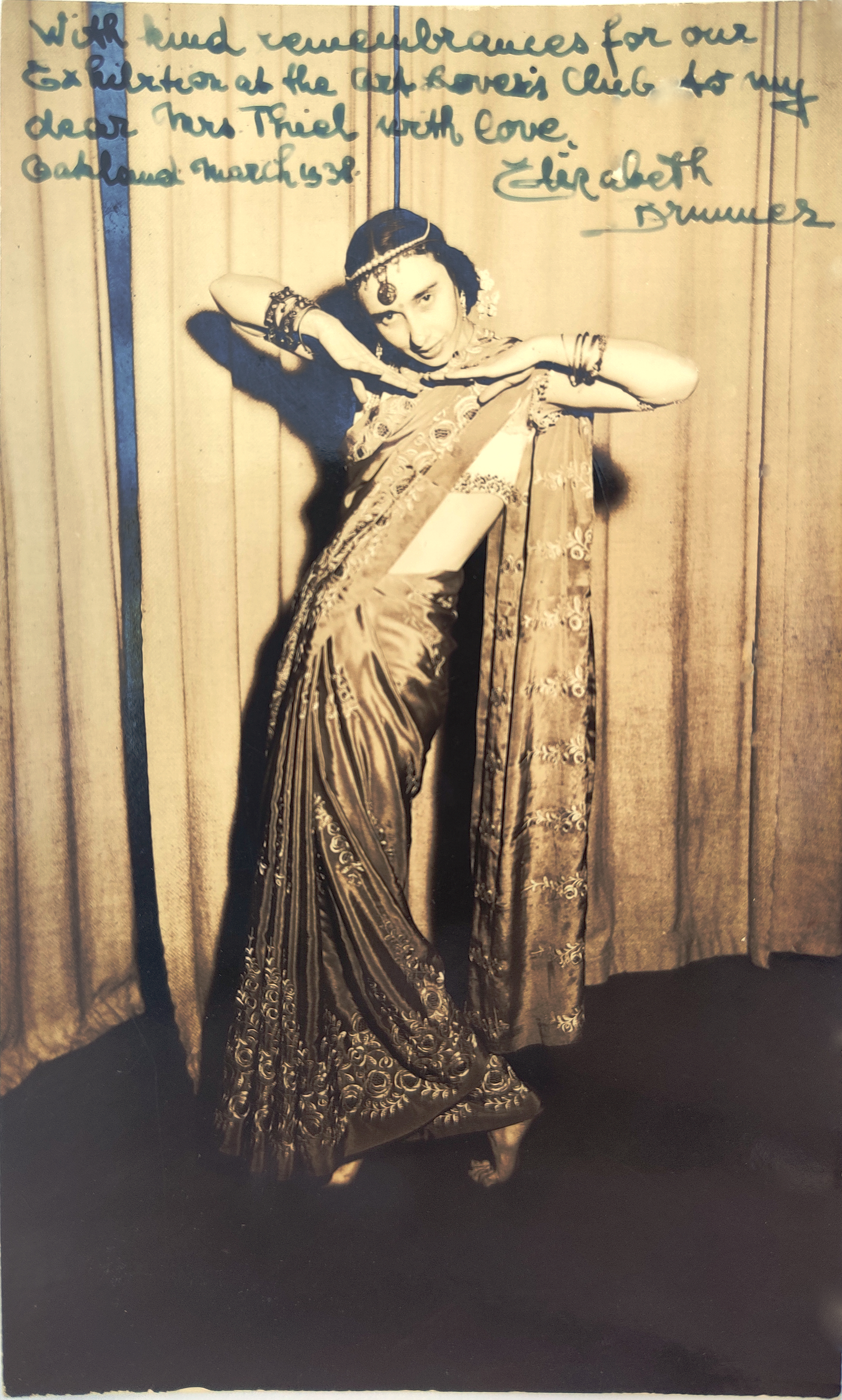 With kind remembrances for our exhibition at the Art Lovers Club to my dear Mrs Thiel with love. Oakland, March 1938. – Elizabeth Brunner