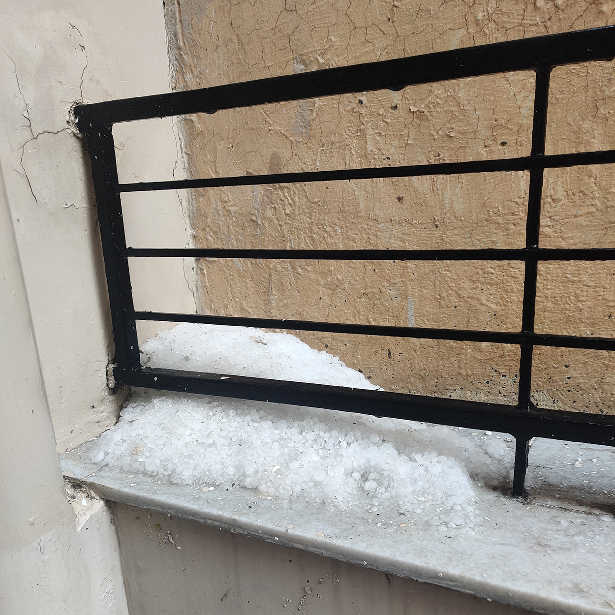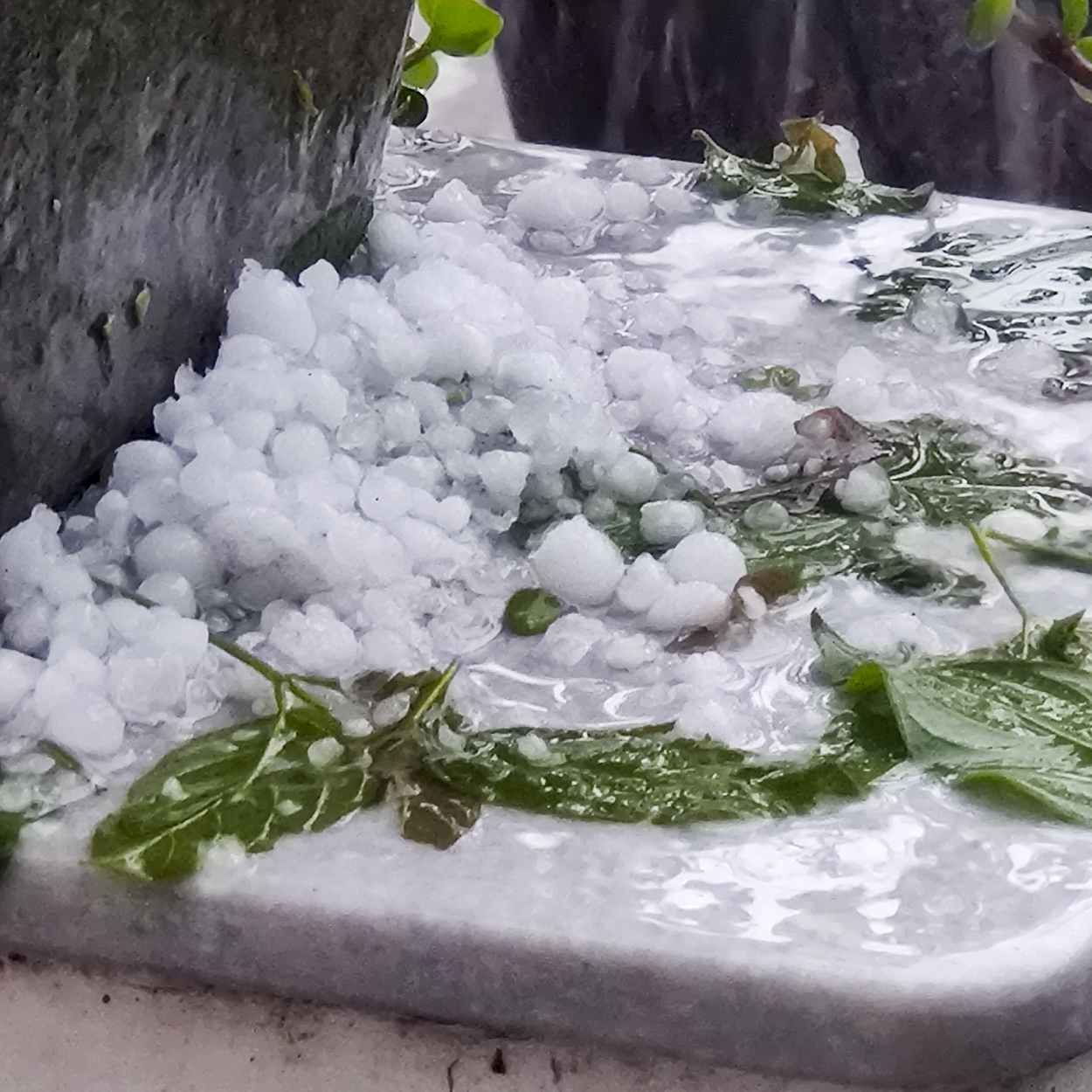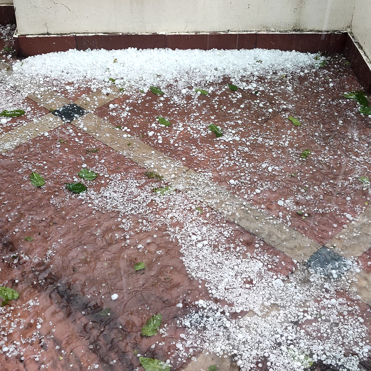 The hail was unrelentingly brutal for over two hours in Gurgaon yesterday. Unprotected plants and trees bore the brunt and fury of hard hitting marble sized hail which destroyed even hardy shrubs. Long winding Bougainville which was heavy and loaded with flowers was disrobed and now hangs broken and humiliated. The rubber fig and the kadamb trees were pelted with bullet-like ferocity punching holes through their leaves. All our spring beauties have suffered. While the hail chose cozy corners to accumulate and show-off the storm left a trail of destruction in the lawn.