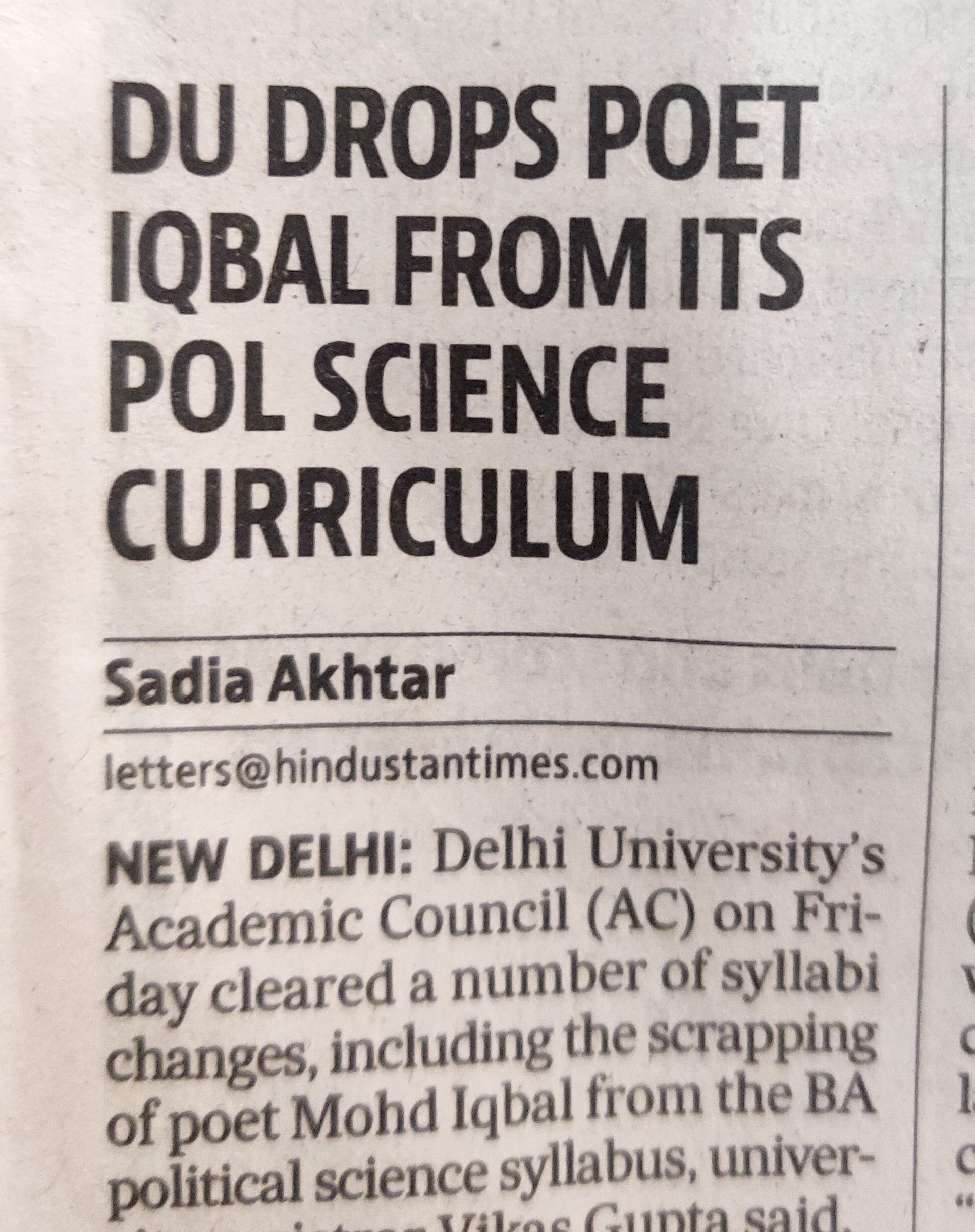 कौन गाएगा अब ‘सारे जहाँ से अच्छा हिन्दोस्ताँ हमारा’ May 27, 2023Posted in Delhi एक दिन ग़र्क़ न कर दे तुझे ये सैल-ए-वजूददेख हो जाए न पानी कहीं सर से ऊँचा फ़ज़ा इब्न-ए-फ़ैज़ी ” दग़ा करे वो किसी से तो शर्म आए मुझे ” Share this: @RajinderArora Click to share on Facebook (Opens in new window) Facebook Click to share on X (Opens in new window) X Like Loading...
