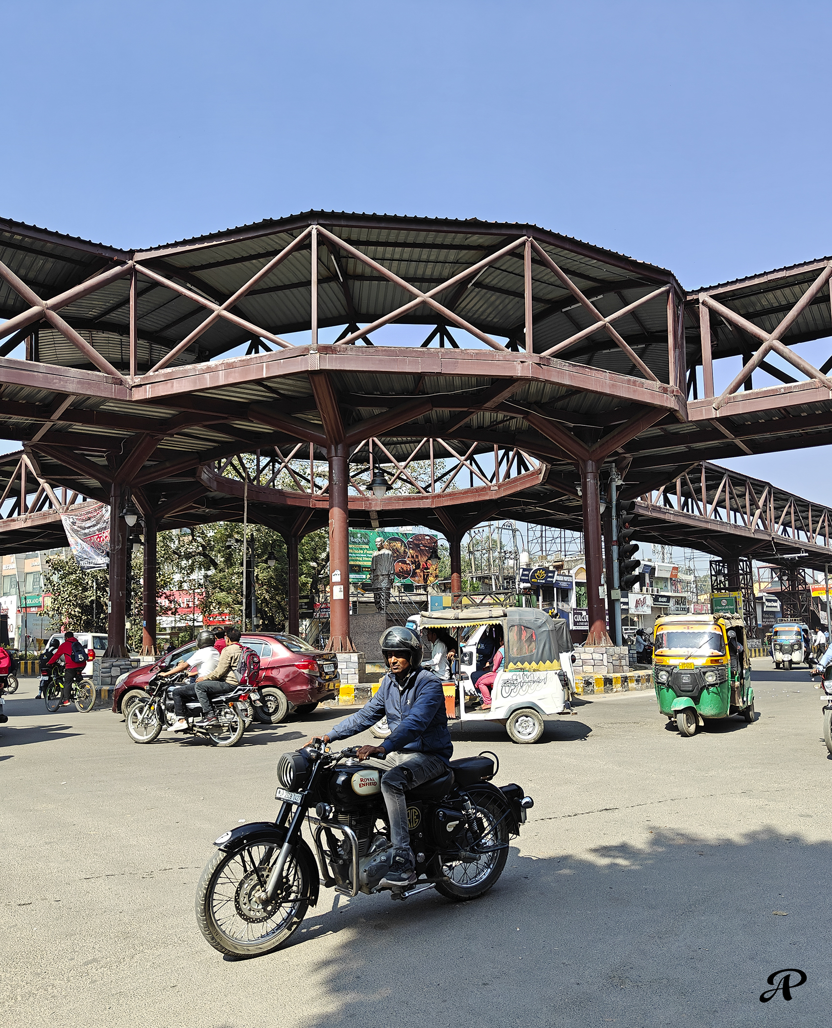 रुद्रपुर जाती एक राकेट नुमा बस ने उस रोज़ हमारा काम तमाम कर दिया होता। भला हो उस रिक्शा वाले का जिसने अपने साथ हमें खींच कर बचा लिया वरना बरेली वालों को फूल ख़रीदने के पैसे और खर्च करने पड़ते । खैर, गलती थोड़ी हमारी भी थी हम जो आसमान की और देखते हुए इस “स्काईवॉक” नामक अजूबे को निहारने में मशगूल थे और ये सोच रहे थे कि इसके ऊपर पहुंचने का रास्ता कहां है। लगता है रुद्रपुर वाली बस के ड्राइवर ने उस दिन सूर्य पुत्र यम की ड्यूटी पर थे और उन्होंने कुछ ग़लत सुन लिया। आख़िर ऊपर पहुंच कर समझ आया कि तफ़रीह की जगह है। लगता है इसका नामकरण “स्काईवॉक” कुछ जल्दी में हो गया और शीशे की प्लेट लगवाने का बजट पास नहीं हुआ तो बस लोहा-लंगड़ और लकड़ी-वकड़ी से ही ठोक पीट के खुश कर दिया चौराहा अयूब खां को। प्रभात भाई (@Prabhat Singh) ने ठीक फ़रमाया स्मार्टसिटी का लोहा मनवाना था। पैर के नीचे ना सही आस-पास तो देख ही सकते हैं। कुछ भी कहो शहरियों की नज़र से दूर जवान लोग इसका खूब इस्तेमाल कर रहे हैं। वैसे चौराहे पर पटेल कुछ अकेले पड़ गए हैं। <सिर्फ़ बरेली वालों के लिए>