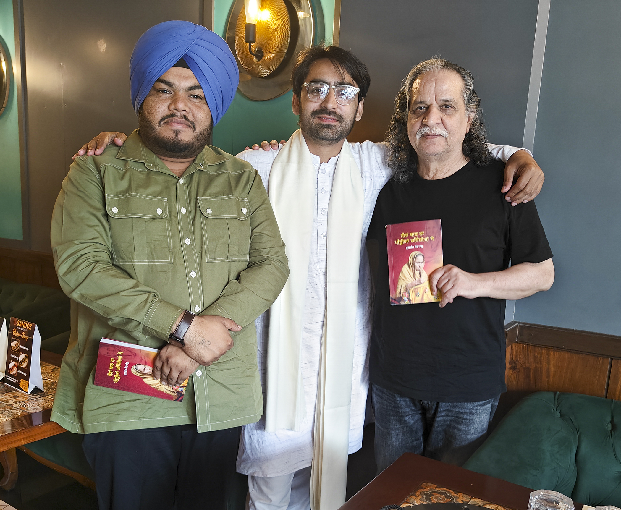 हज़रत अमीर ख़ुसरो के उर्स पे हाज़री लगाने लाहौर से आये दोस्त अली उस्मान बाजवा से कल दोपहर मुलाक़ात हुई। यूँ तो उस्मान को मैं बरसों से जानता हूँ पर कल उनसे पहली बार रूबरू हुए। (रूहों के ये रिश्ते बड़े कमाल के होते हैं) मिलना भी क्या था बस दो घंटों में रावी दरया और उनके प्यार को सोखना भर था। कल रात ही उन्हें वापिस सरहद पार घर लौटना था। उस्मान जाने माने अदीब हैं, रेडियो और टीवी पे कई प्रोग्राम करते हैं “वेख पंजाब” और “पंजाबी संगत” संस्थाओं से जुड़े हैं। पंजाबी ज़ुबान को उर्दू के बराबर का दर्ज़ा दिलवाने में दिलो-जान से जुड़े हैं पर सबसे पहले और सबसे ऊपर एक हसीन इंसान हैं जिनके पास दोस्ती और प्यार की हज़ारों कहानियां हैं । उन्हें मिलने आये एक और दोस्त भी इसी तस्वीर में हैं @सतनाम सिंह जिनसे मैं पहली बार मिला। सतनाम जी जाने माने गायक हैं जो पंजाबी लोकगीत के साथ साथ दिल हिला देने वाली नात भी पढ़ते हैं । हमारी दोस्तियां ही कुछ ऐसी हैं हम जहाँ जाते हैं एक क़िताब ले आते हैं या एक क़िताब दे आते हैं। कुलवंत कौर संधू जी द्वारा संकलित इस किताब में करीब दो सौ पंजाबी लोक गीत हैं जिनमे गीतों के साथ टप्पे, घोड़ियाँ, सुहाग, सेहरे, गिद्धे, बोलियाँ और भाई-बहिन के प्यार के गीत भी हैं। ये क्या कम है की कनॉट प्लेस के कॉरिडोर में सतनाम ने हमे पंजाबी गाना सुनाया।