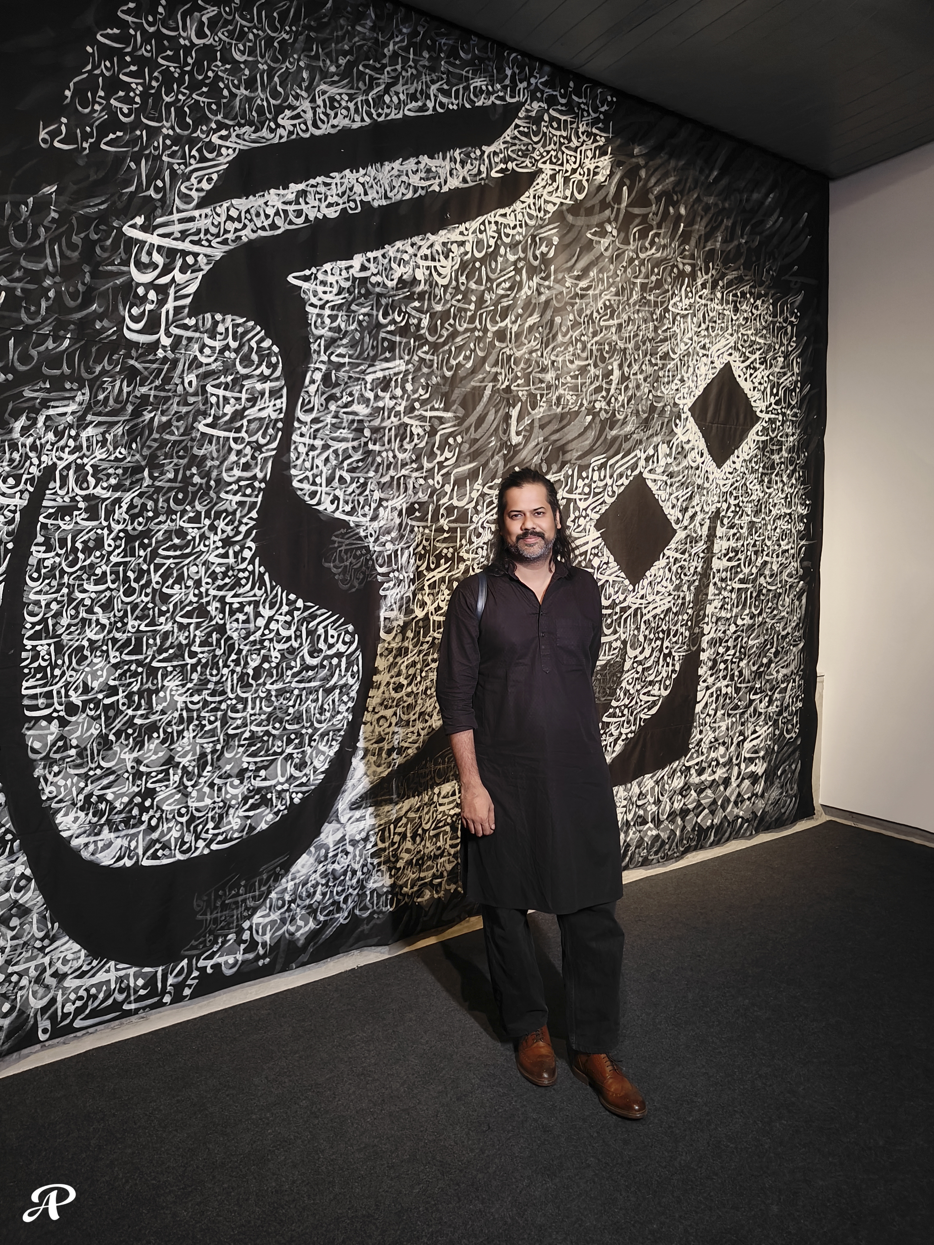 अगर आप शिराज़ हुसैन उस्मानी की कला, उनकी खताती (कैलिग्राफी), उनके स्टूडियो ‘ख्वाब तनहा’ और उनकी शख्सियत से वाकिफ नहीं हैं तो आप बहुत कुछ मिस कर रहे हैं। अपनी क्रीऐटिवटी और अपने हुनर से कल शाम शिराज़ साहब ने महफ़िल लूट ली। मौका और नुमाइश (‘दुनिया परछियों की’) तो हिन्दी सिनेमा के फिल्म पोस्टर, गीत पुस्तिकाएं, लॉबी कार्ड और बड़े छोटे परदे पर चलती तस्वीरों की थी पर शिराज़ हुसैन के बनाए परदों पे थिरकते हर्फों नें देखने वालों पर ना सिर्फ जादू कर दिया पर वो आज के माहौल पर एक तबसरा भी हैं ।