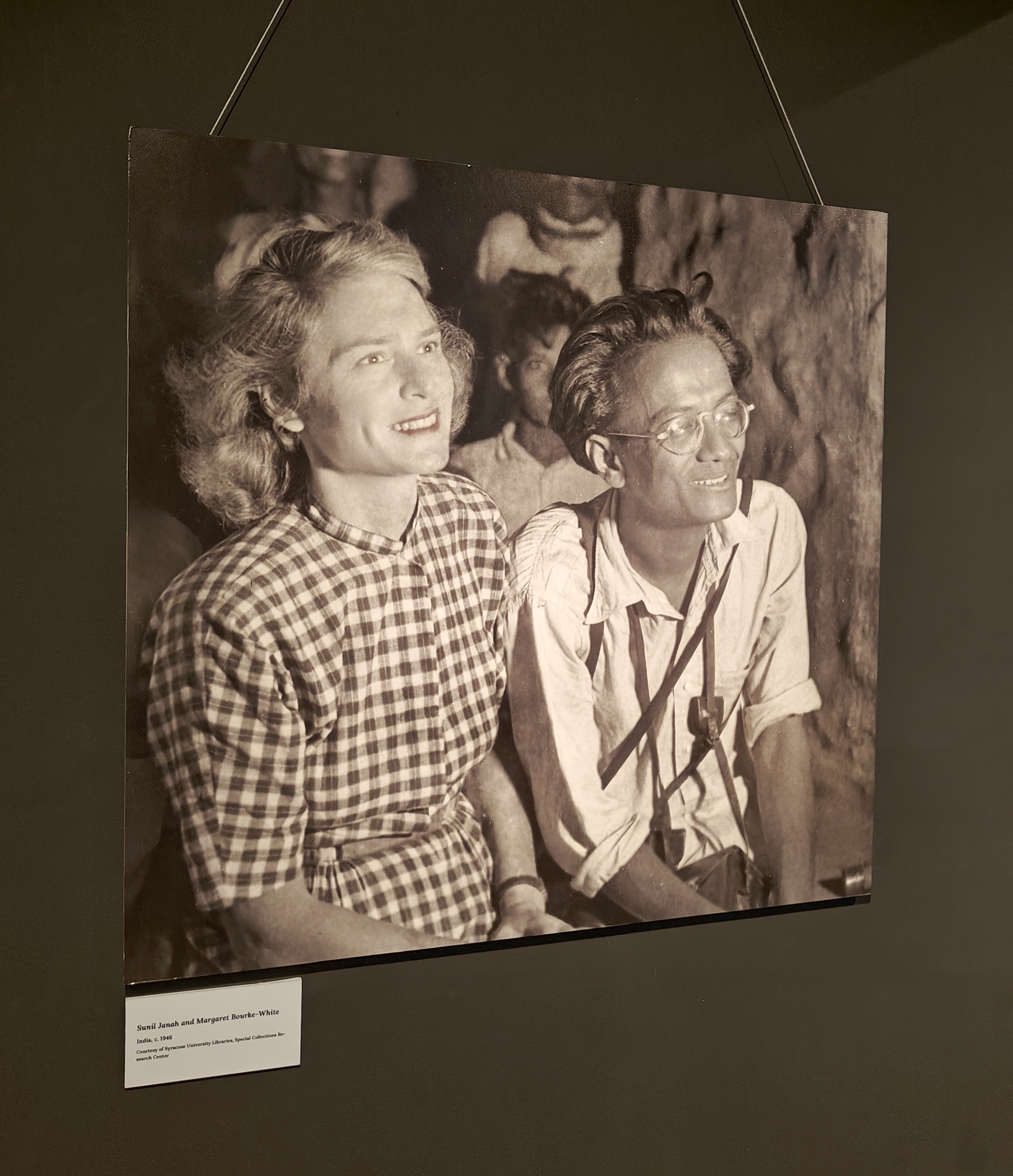 Sunil Janah would have been 108 today (17 April). His powerful photographs documented India’s independence movement, its peasant and labour movements, famines and riots, rural and tribal life, as well as the years of rapid urbanization and industrialization. The pictures he took were “a powerful mobilising tool, bearing witness to a brutal famine that the British were actively trying to deny.” About this picture of two tribal women, he said, “I took a number of photographs unknown to them; they were watching Margaret Bourke-White at work. The young girl was particularly striking.” Janah is quoted about his picture in the book, ‘The Second Creature‘, published by Signet Press in 1943. In the next picture (from a show at Museuo Camera, Gurgaon) are Sunil Janah and Margaret Bourke-White, c.1946, who collaborated on many projects. Sunil Janah was an Indian-American photojournalist and documentary photographer who worked in India in the 1940s.