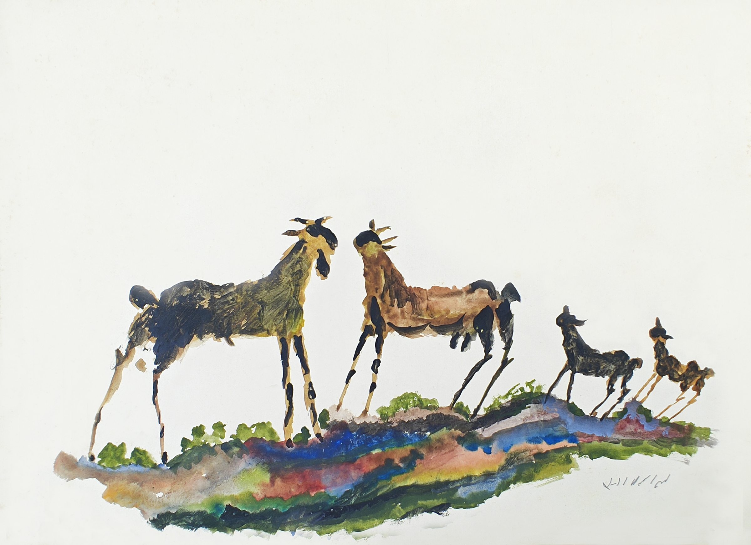 On a burning-hot April afternoon (like today), sometime in 1994 or 95 Suneet Chopra entered the Ishtihaar office, his face red and profusely sweating. A safa, the kind worn by a peasant-mazdoor leader was dripping on his head. Without saying a word he pulled up a chair and sat down. Cleaning his glasses with the gamachha, he ran his fingers through his beard and drank two glasses of water. A cup of tea later he asked me to get up and come with him. “Where to?” I asked. At the Delhi College of Art, there is a show of final year students’ works on display and for sale.” When Suneet spoke with that kind of authority you couldn’t say no. We drove to the college where the artworks of final-year BFA students were on display for assessment and for sale. Walking up and down the corridor and the hall, we looked at the artworks but weren’t ready to pay the prices students had labelled them for. We were about to leave when we met Saam Lal (that’s how he pronounced his name). Saam (Shyam), a peon-like assistant at the college, held a few rolled sheets in his hand. He had displayed two others on a cord along the outer wall. Those were HIS paintings. Shyam Lal, who had never attended school, learnt to draw and paint at DCA only. A few works that he managed to sell in a year supplemented his meagre salary. Looking at his works Suneet retraced his steps, and so did I. Suneet kept looking at the “Goats” – a gorgeous single one, and a clean-coated family of four. Suneet asked Shyam Lal to open the roll in his hand, which had two more artworks; Goats again. He looked at me and nodded, signaling that we should take these. Between the two of us we bought all four works. Shyam Lal asked for 2,500 each. Mind you, these are 3×2 feet fabulous works, watercolour on acid-free chart paper. The two in picture are with me, I wonder what Suneet did with his. Over thirty years now… every time I look at these works I remember both Suneet and Saam. Suneet is gone, I wonder what ever happened to tall, emaciated, smoker Saam who could hold both a brush and a bidi in his left hand while painting. Syam signed these works for us with a pencil tucked in his left ear. I cherish these.